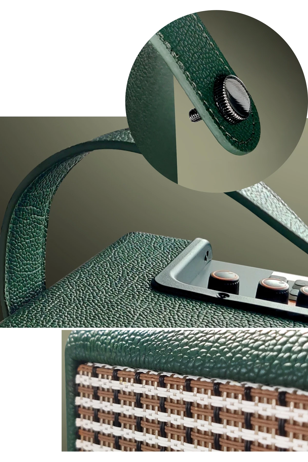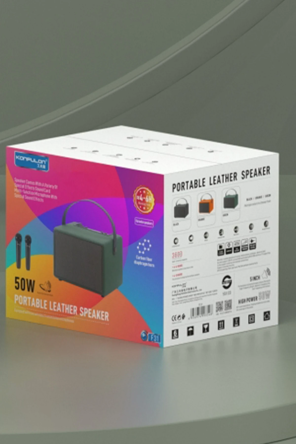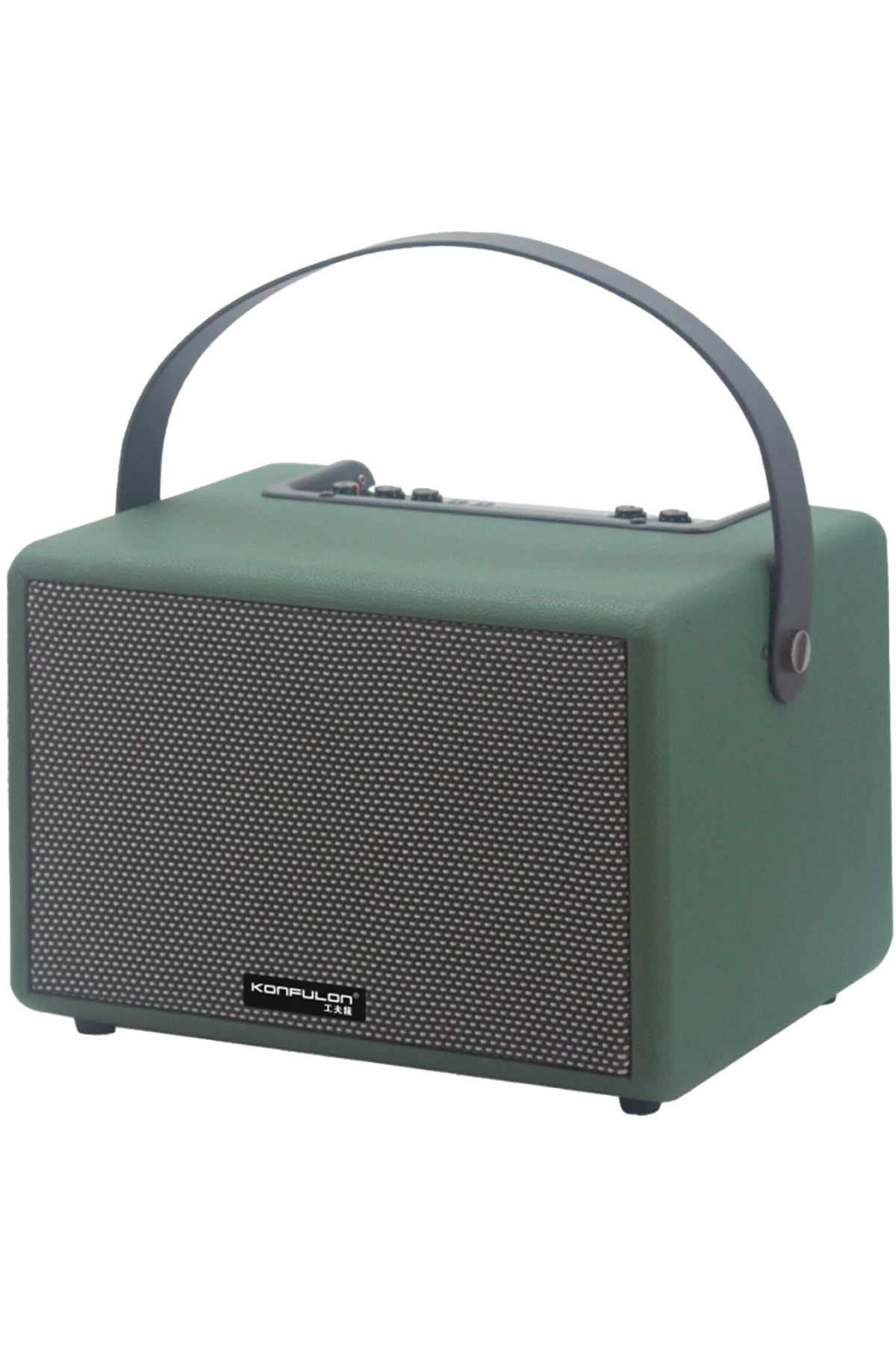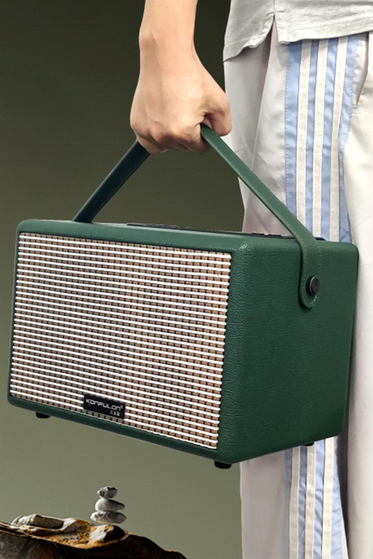 Konfulon F31 50W 3D Stereo Ses Sürücülü 2 Adet Mikrofonlu BT 5.2 Kablosuz Hoparlör Deri ve Nostaljik görünümlü – Yeşil