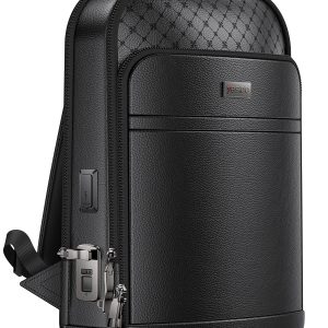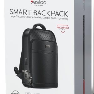 Yesido WB59 Hakiki Deri Parmak İzli Kilitli Güvenlikli Özellikli Akıllı Sırt Çantası – Siyah